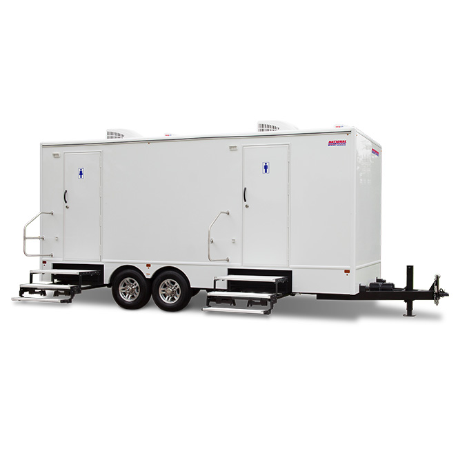 These portable bathrooms have fresh water, flushing toilets,. This portable restroom trailer rental either has 8 private.