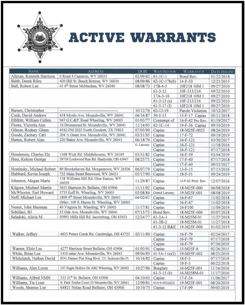 Warrants Marshall County Sheriff, WV