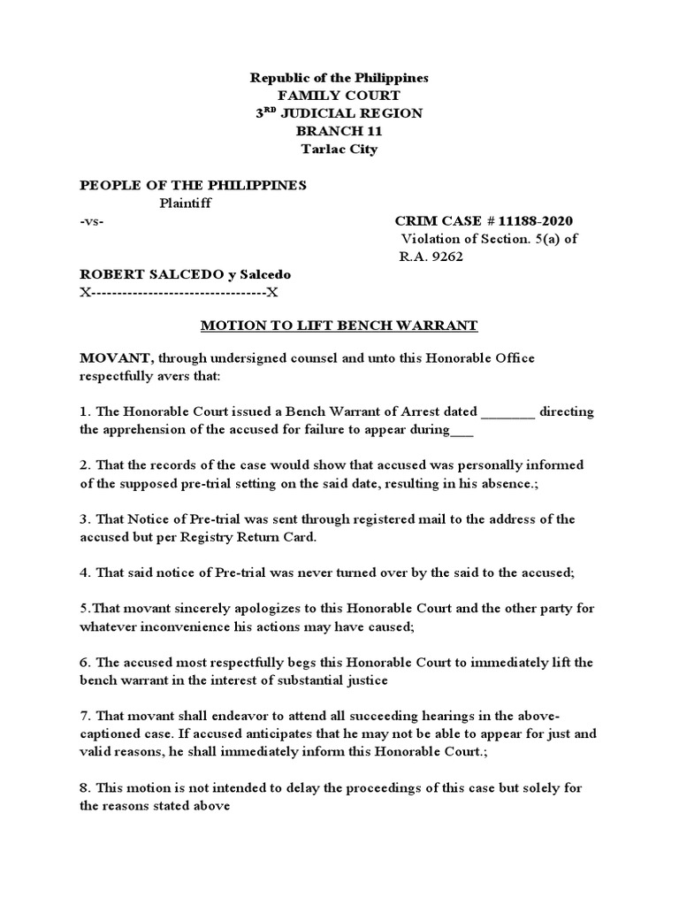 Motion To Lift Bench Warrant PDF Public Law Public Sphere