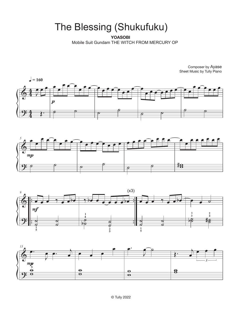 YOASOBI The Blessing (Shukufuku)「祝福」 (Easy ver.) Sheet by Tully Piano