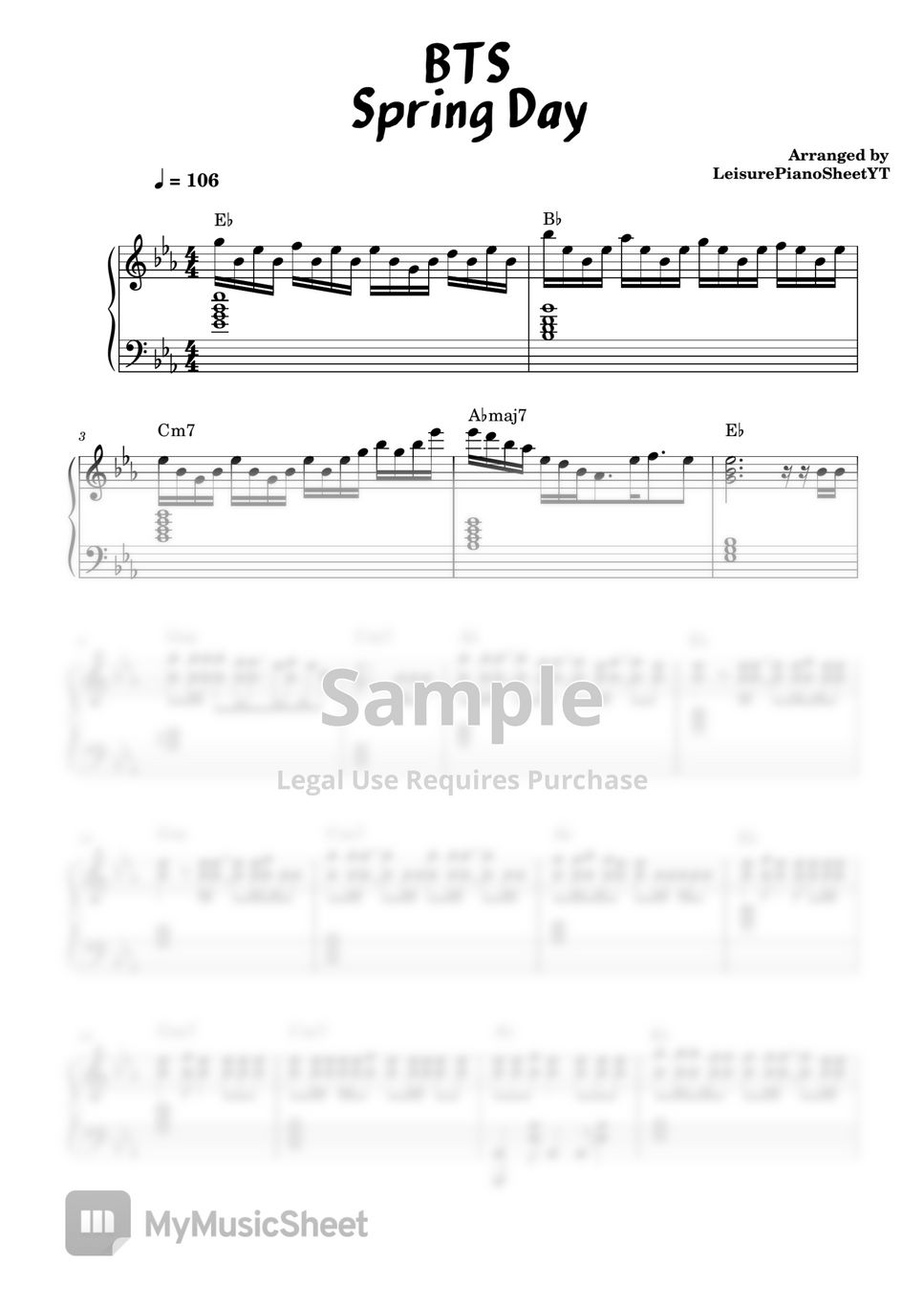 BTS 방탄소년단 防彈少年團 봄날 Spring Day Sheets by Leisure Piano Sheets YT