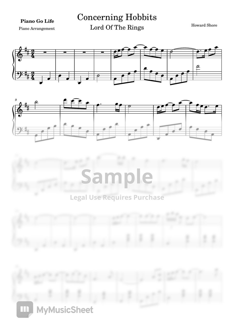 Lord of the Rings Concerning Hobbits (Howard Shore) Sheets by Piano