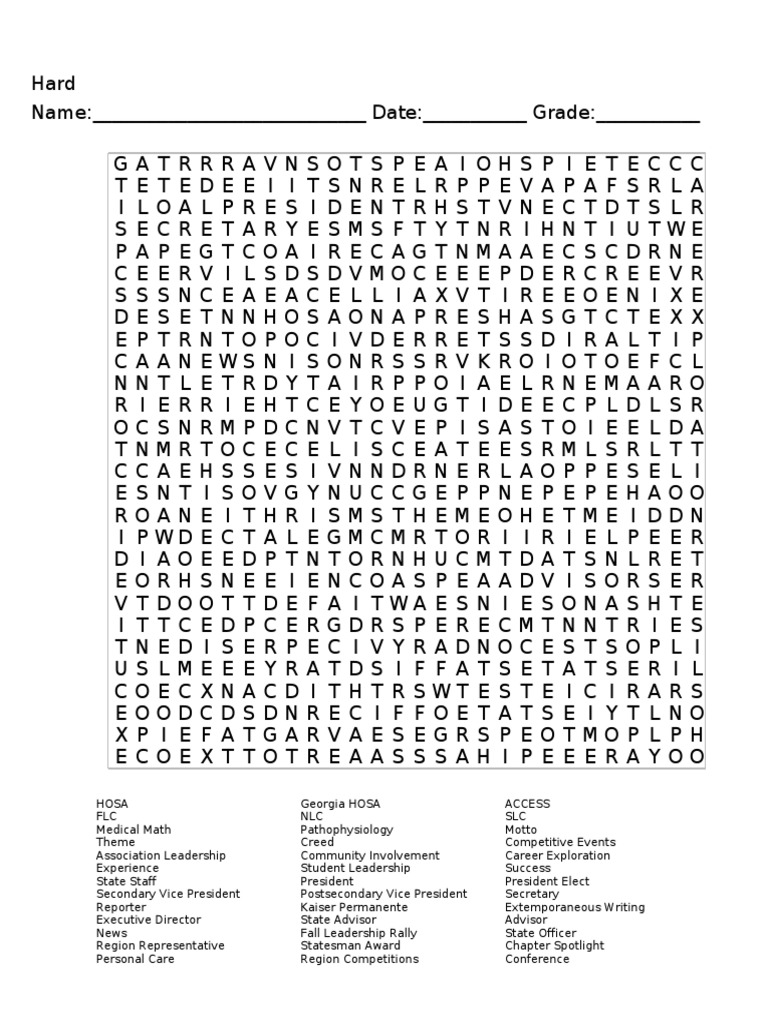 Hard Word Search Free Printable