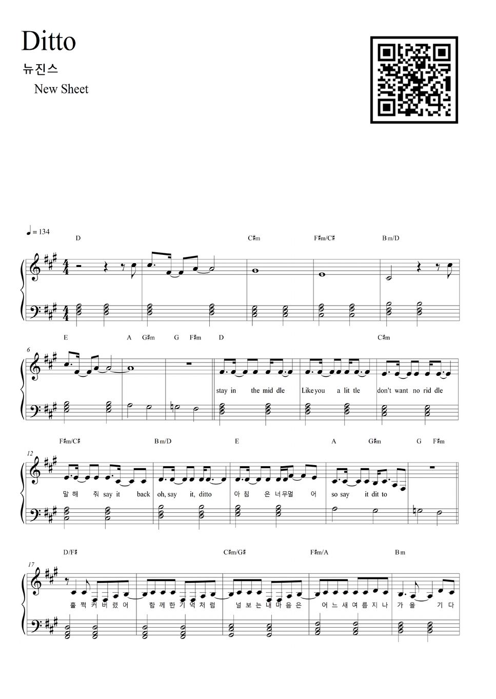 NewJeans Ditto (Piano Solo / EASY) Sheets by NewSheet