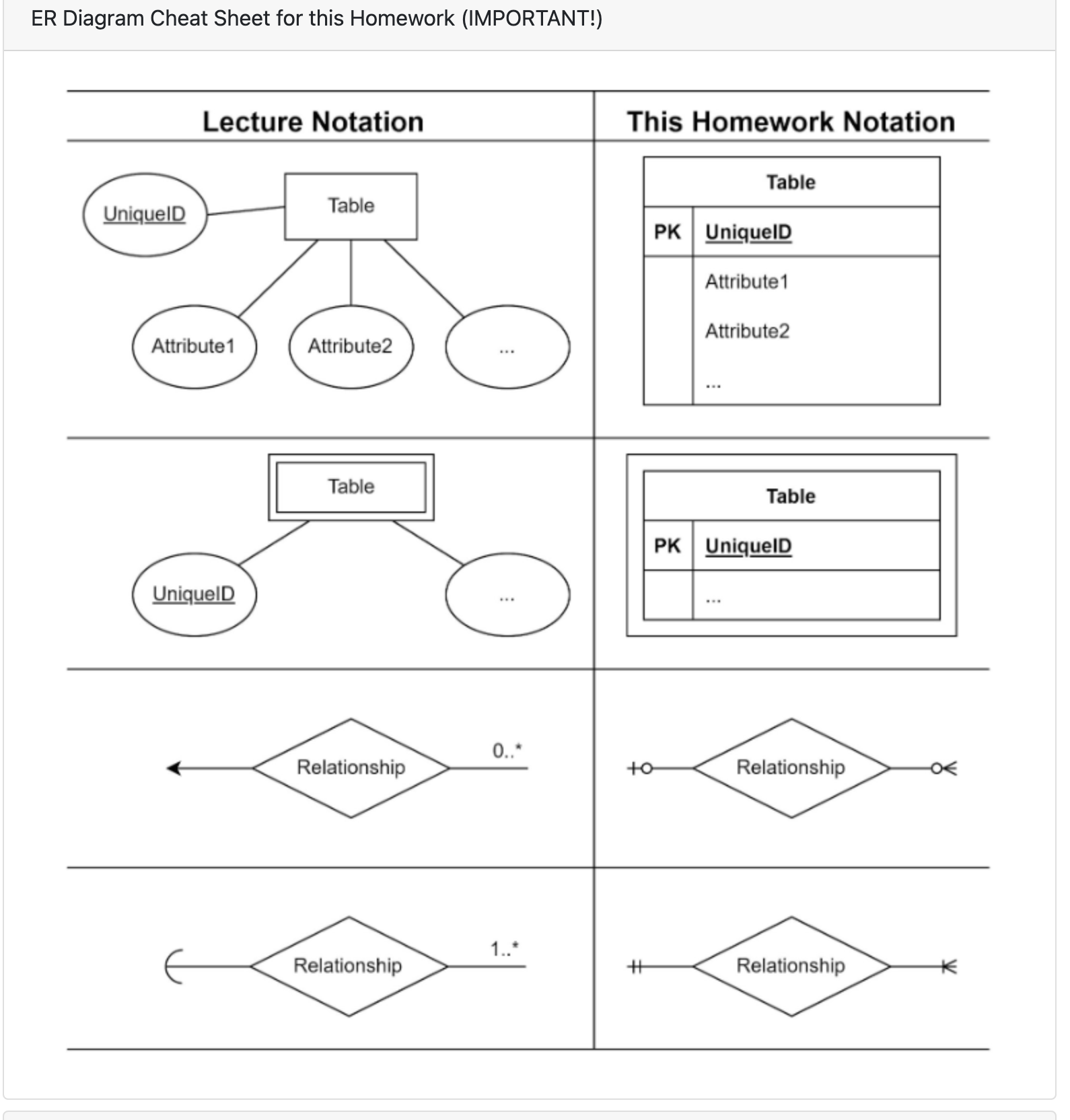 Solved ER Diagram Cheat Sheet for this Homework