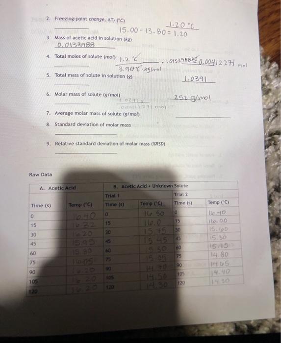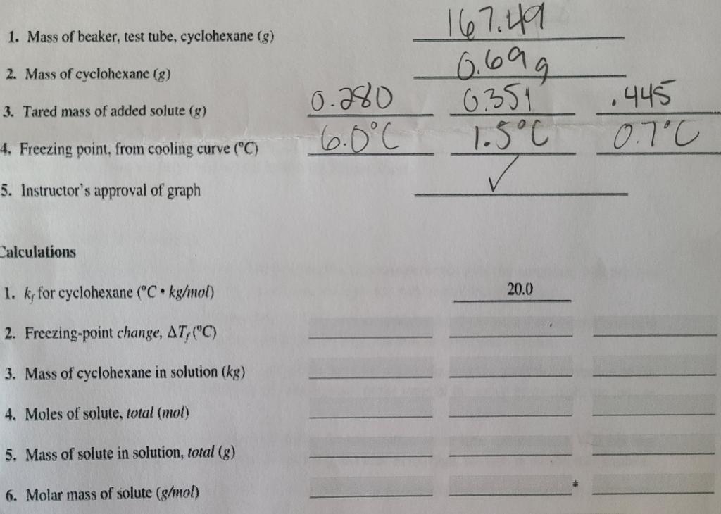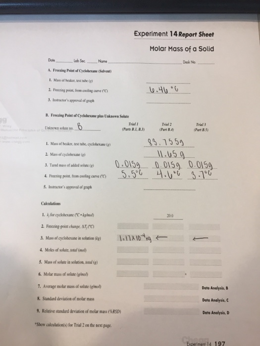 SOLVED Experiment 14 Report Sheet Molar Mass Qf a Solid Dale Freezing