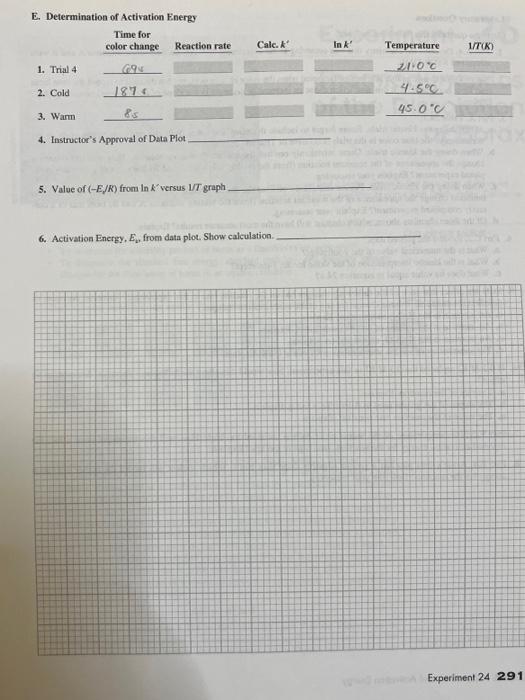 Solved Experiment 24 Report Sheet A Rate Law and Activation