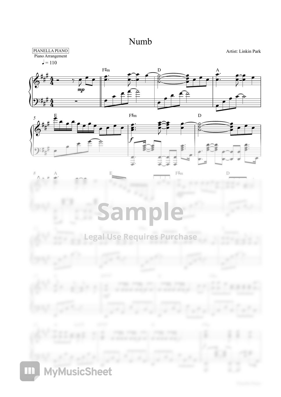 Linkin Park Numb (Piano Sheet) Sheet Music by Pianella Piano