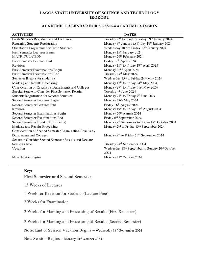 Revised University Calendar 202324 Download Free PDF Academic Term