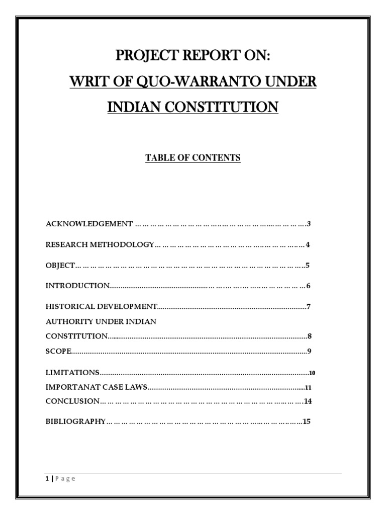 Quo Warranto Writ Format PDF Writ Common Law