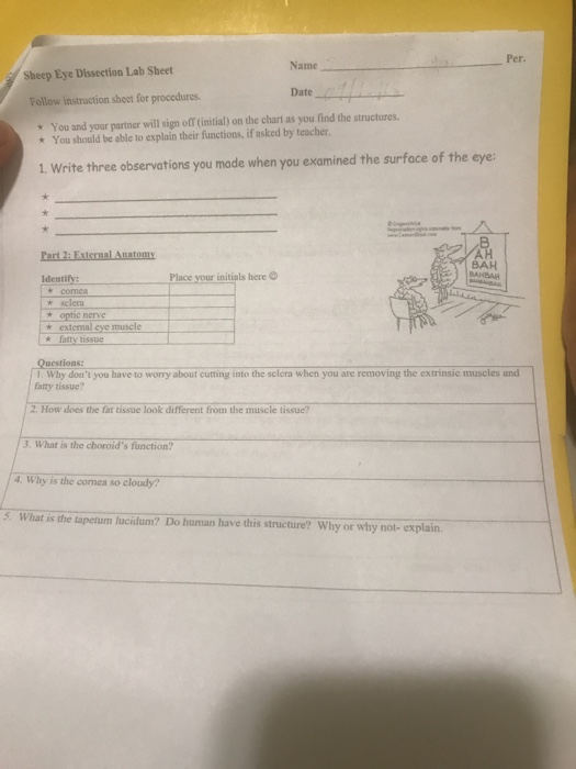 Solved Per Name Sheep Eye Dissection Lab Sheet Follow