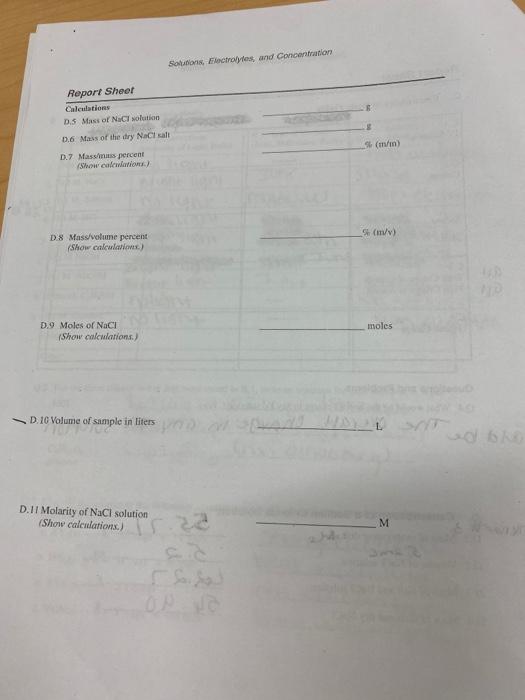 Solved Solutions Electrolytes and Concentration Report Sheet