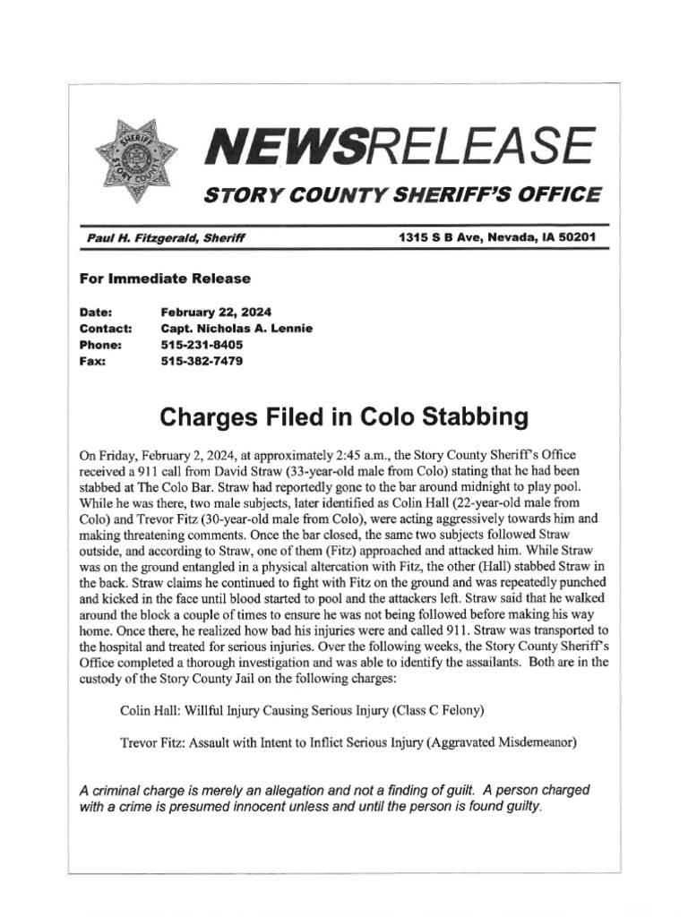 Story County Sheriff's Office Arrest in Colo, Iowa Stabbing PDF