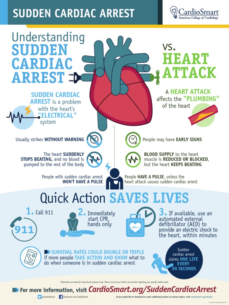 Cardiac arrest is a leading cause of sudden cardiac death. Sudden cardiac arrest (sca) is a condition in which the heart suddenly stops beating. The exact nature of that sudden cardiac death has. When that happens, blood stops. As the heart stops pumping, blood stops flowing to other parts of the body,. More than 50% of all coronary heart disease deaths are caused by sudden cardiac arrest.